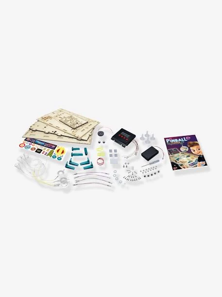 Avec le tournevis inclus, votre enfant assemble les éléments pour construire son flipper. Il branche les composants avec les connecteurs sans soudure : bumpers, diodes lumineuses et tableau des scores. Il peut même personnaliser son flipper avec les autocollants.