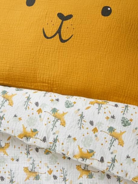 Cette adorable housse de couette en gaze de coton assurera des nuits de tendres aventures à votre enfant ! Elle est entièrement imprimée de végétation de petits tigres qui accompagneront bébé pour de jolis rêves.