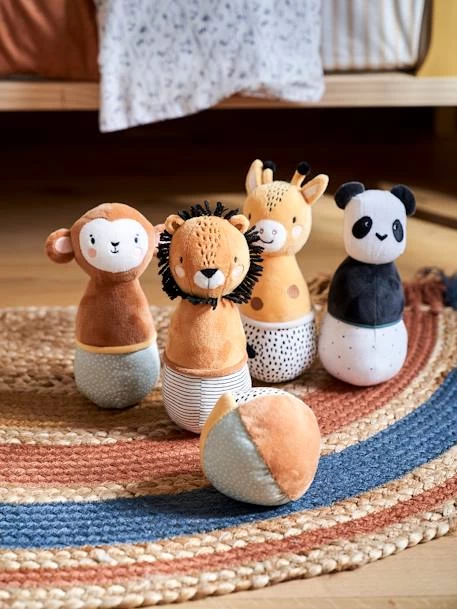 - 4 quilles animaux : 1 lion, 1 panda, 1 girafe, 1 singe