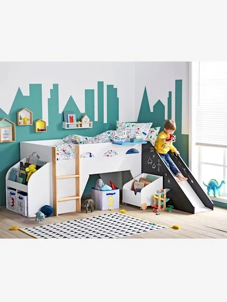Quel enfant ne rêve pas d’avoir un lit toboggan ? Ludique et design, ce chouette lit a vraiment tout pour plaire ! Comme il est surélevé, vous pourrez vous servir de l’espace sous couchage pour y placer des bacs ou des paniers de rangements !